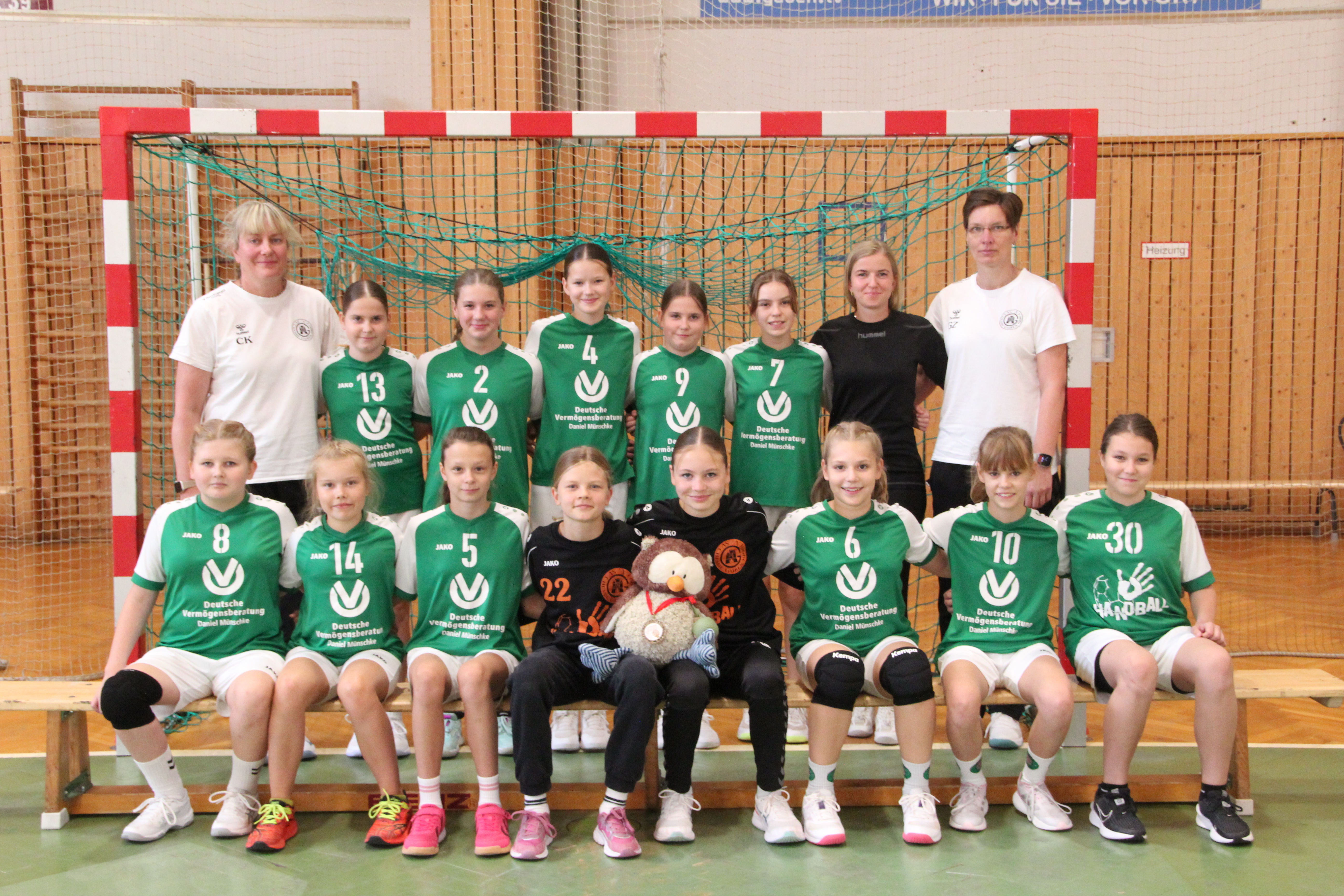 hinten v.l.n.r.: Carmen (Trainerin), Lia, Kira, Ida, Lana, Erna, Vanessa (Trainerin), Gaby (Trainerin)